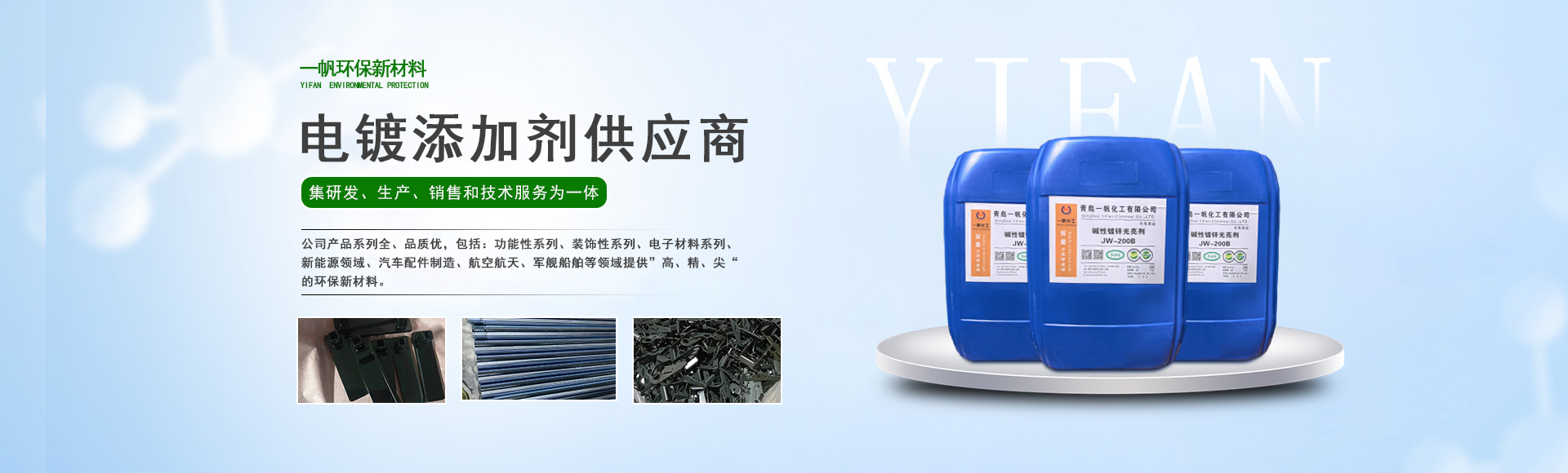 青島一帆環(huán)保新材料有限公司主營酸鋅載體、堿鋅中間體等一站式電鍍添加劑服務(wù)商!